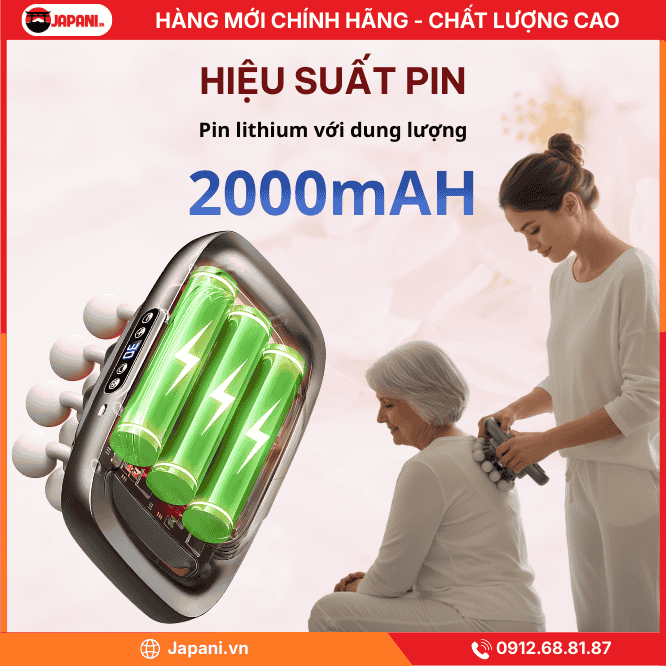 Máy đấm lưng cầm tay JAPANI MDL-5403 tích hợp nhiệt hồng ngoại, 16 đầu massage, pin 2000mAh, hỗ trợ giảm đau cơ sâu, thư giãn toàn thân hiệu quả.