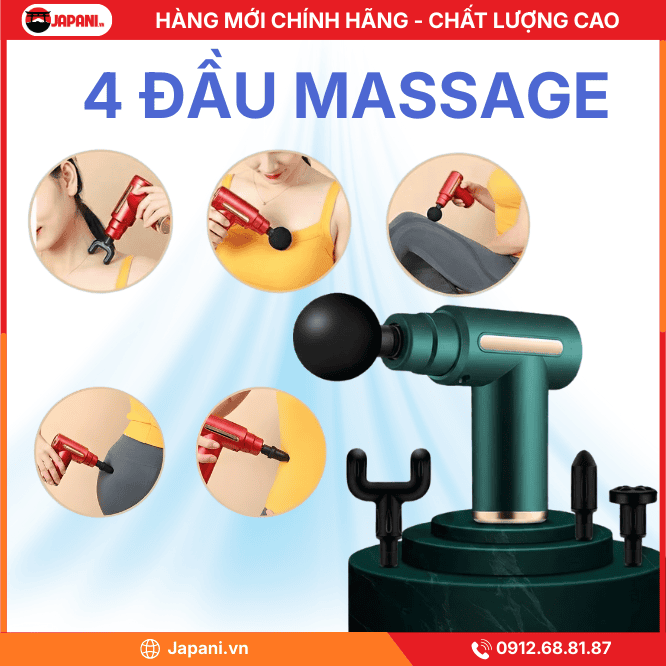 - 4 đầu đi kèm chuyên dụng: Bộ đầu thay thế phong phú, phù hợp cho mọi vị trí trên cơ thể như cổ vai gáy, lưng, đùi, bắp tay.