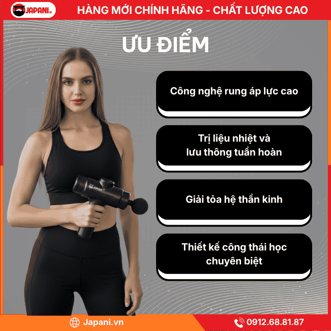 - Công nghệ rung áp lực cao: Tác động sâu xuyên thấu qua các lớp cơ nông, tiếp cận trực tiếp các bó cơ bị căng cứng tại cột sống và thắt lưng, giúp giải tỏa điểm kích hoạt đau (trigger points) tức thì.