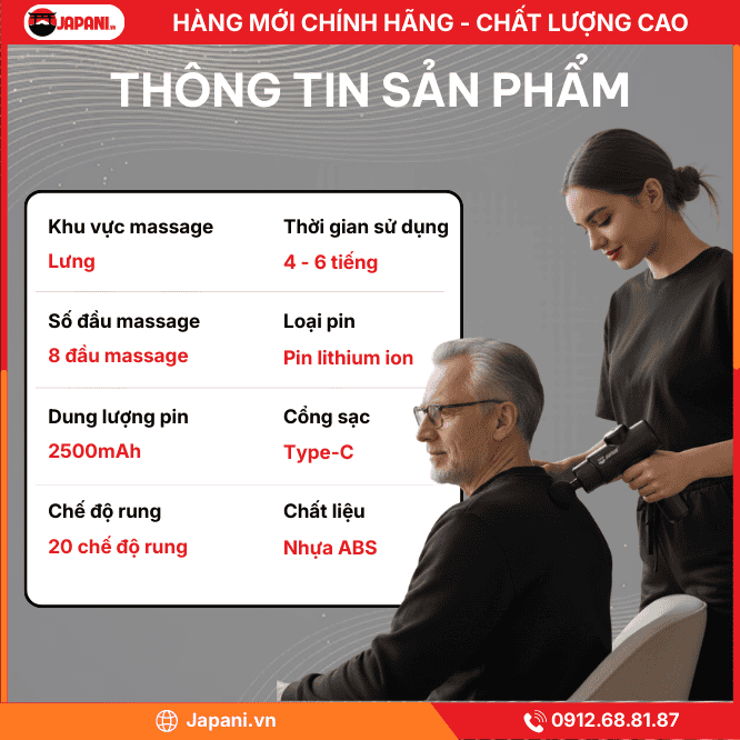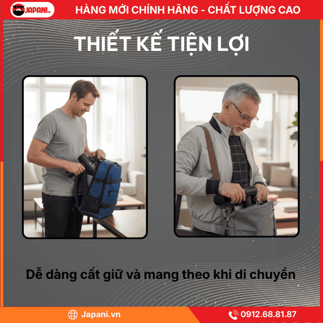 - Thiết kế công thái học chuyên biệt: Trọng lượng và chiều dài máy được tính toán để tối ưu lực đấm mà không gây mỏi tay cho người sử dụng, đặc biệt hiệu quả cho các vùng khó tiếp cận như thắt lưng và bả vai.