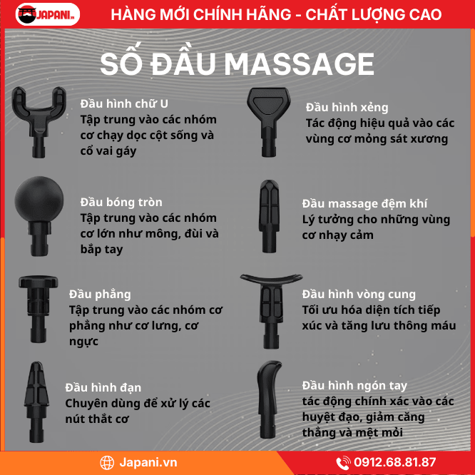 - Đầu phẳng (Flat Head): Bề mặt tiếp xúc phẳng giúp tác động lực đều và rộng, đặc biệt hiệu quả để thư giãn các vùng cơ phẳng như cơ lưng, cơ ngực.