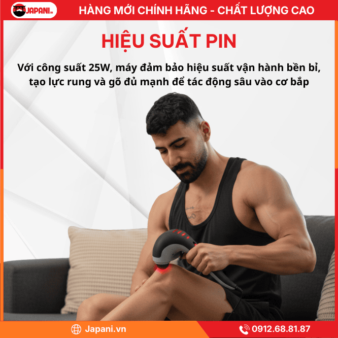 Với công suất 25W, máy đảm bảo hiệu suất vận hành bền bỉ, tạo lực rung và gõ đủ mạnh để tác động sâu vào cơ bắp. Công suất này phù hợp cho cả nhu cầu thư giãn hằng ngày lẫn massage chuyên sâu, giúp giảm đau mỏi cơ hiệu quả mà vẫn đảm bảo an toàn khi sử dụng lâu dài.